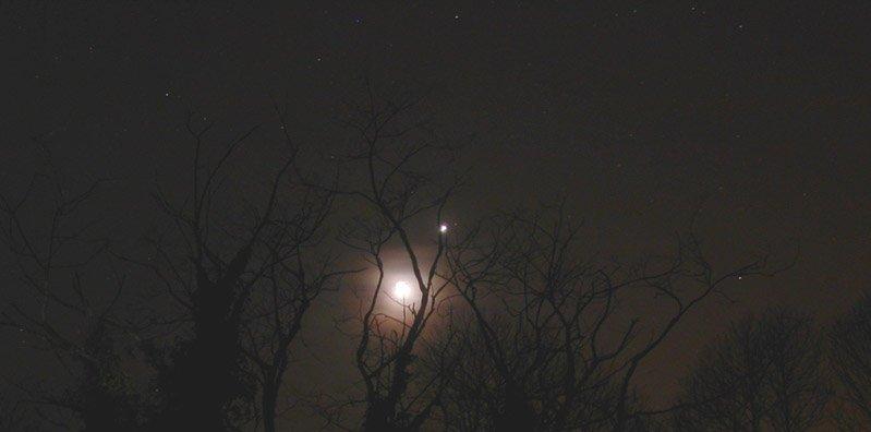 2004年2月23日の月曜日の夕方、月は金星と非常に近い。