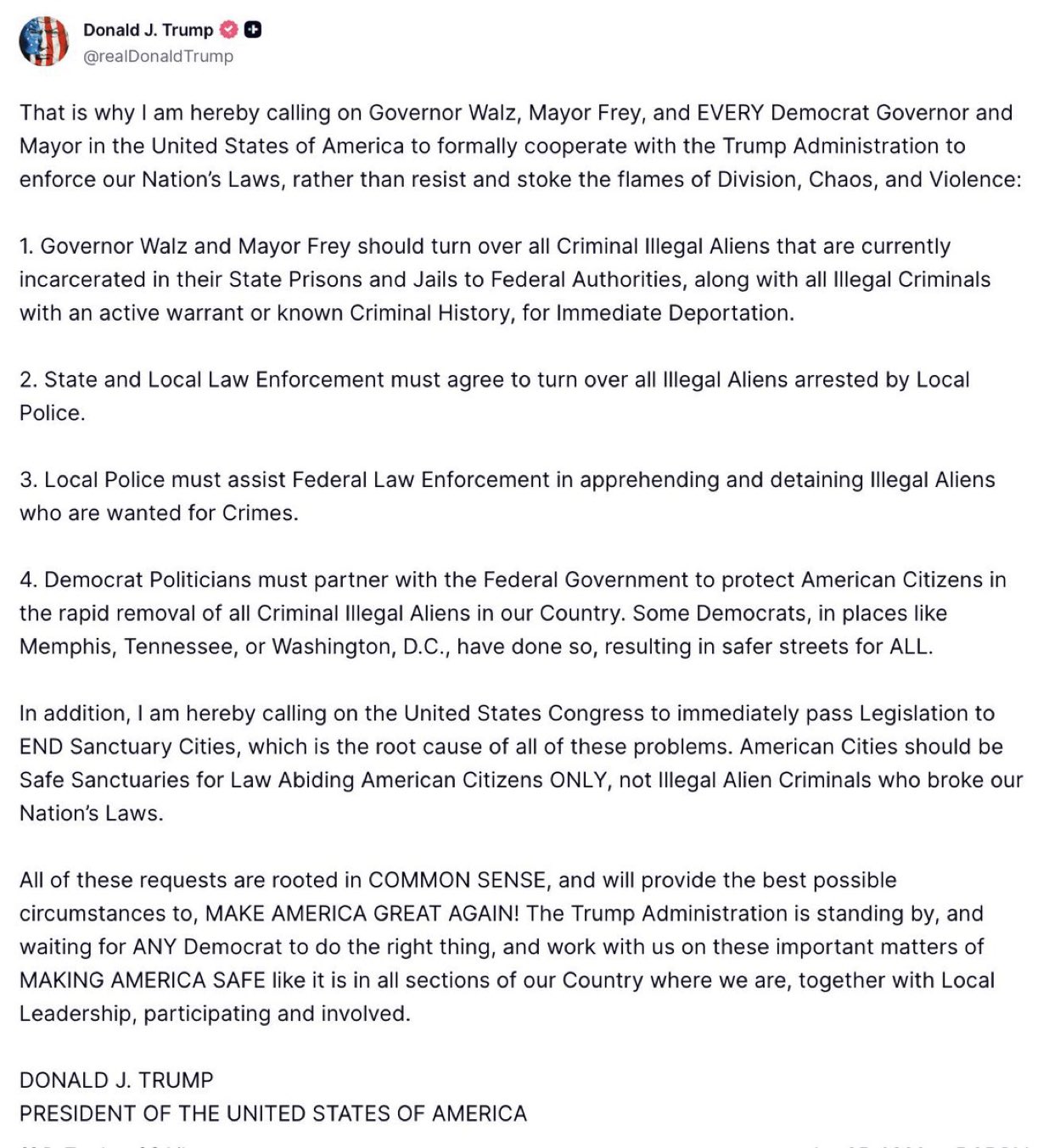 - Trump: Gov. Walz, Mayor Frey Are