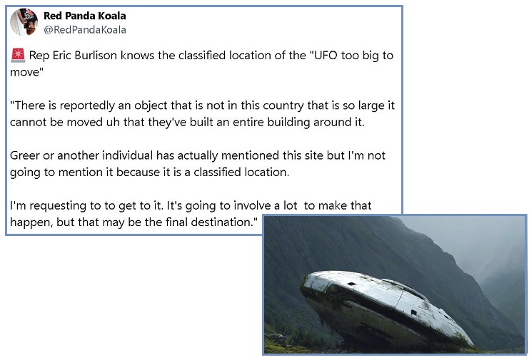 What is the nexus between the rumors that President Trump is going to disclose the alien presence at the Roswell Anniversary in July and the sudden discussion about the Big UFO long rumored to exist and President Trump's determination to secure Greenland as a satellite country of the US? This UFO is rumored to be too big to move and hidden from view. Issues such as garnering alien technology arise. Greenland has US bases and is sparsely populated and is indeed the location. The UFO is too heavy to be air lifted and its anti-gravity is not operational. Despite all efforts it cannot be disassembled into pieces, nor can the metal be cut.
