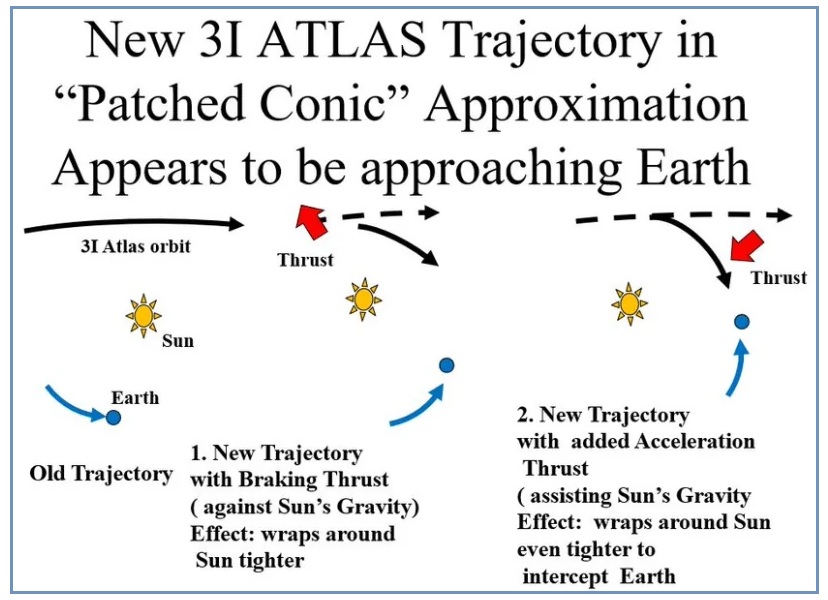 OH, oh. 3I/ATLAS has reportedly changed its trajectory just before passing behind the Sun [and from another] Interstellar object 3I ATLAS may have changed course, new trajectory suggests approach toward Earth October 27, 2025 https://www.reddit.com/r/space/comments/1ohchkl/interstellar_object_3i_atlas_may_have_changed/ Astrophysicist John Brandenburg suggests that outgassing jets from interstellar object 3I ATLAS could be altering its orbit in a way that brings it closer to Earth.